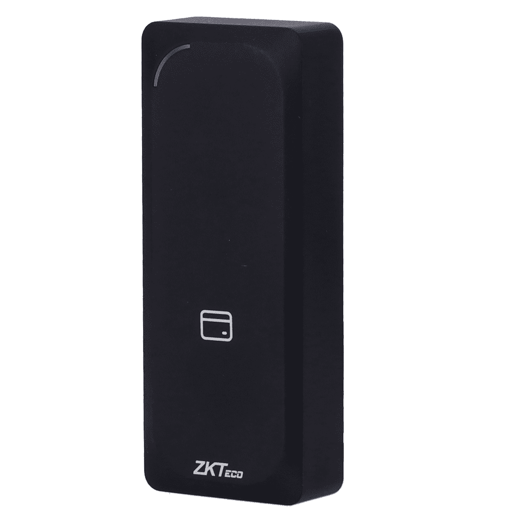 Leitor de acesso para armações – Acesso por cartão EM e MF DESFire – Indicador LED e acústico – Wiegand 34/66 | RS485 – Compatível com controladoras ZKTeco – Apto para exterior IP65