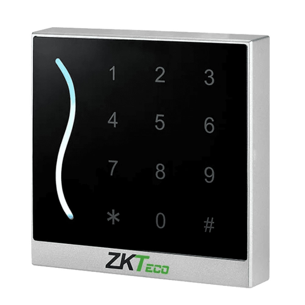 Leitor de acesso – Acesso por cartão MF e PIN – Indicador LED e acústico – Wiegand 26/34 – Compatível com controladoras ZKTeco – Apto para exterior IP65
