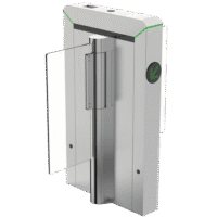 Torniquete de acesso bidirecional – Porta individual motorizada – Horários, alarmes e modos de abertura – Dimensões de passo 800 mm | 5.000.000 ciclos – Fabricado em aço inoxidável SUS304 – Compatível com sistemas de terceiros