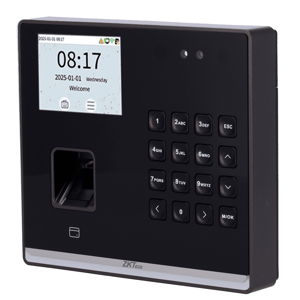 Controlo de presença e acesso simples – Facial, impressão digital, cartão EM e PIN – 1.000 impressões | 150.000 registos – 2.8″ TFT , TCP/IP, Wi-Fi, USB e relé – Presença de software: GoTime Cloud