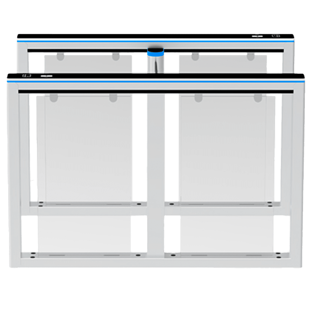 Torniquete de acesso bidirecional – Porta com barreira acrílica dobrável – Horários, alarmes e modos de abertura – Dimensões de passo 660 mm | 5.000.000 ciclos – Fabricado com liga de alumínio – Compatível com sistemas de terceiros