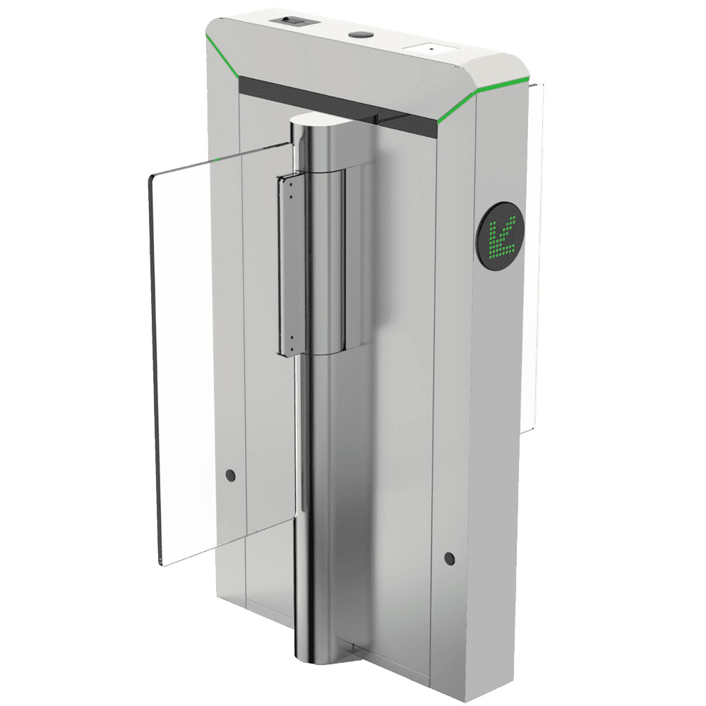 Torniquete de acesso duplo bidirecional – Portão compacto com barreira acrílica articulada – Horários, alarmes e modos de abertura – Dimensões de passo 900 mm | 5.000.000 ciclos – Fabricado em aço inoxidável SUS304 – Compatível com sistemas de terceiros