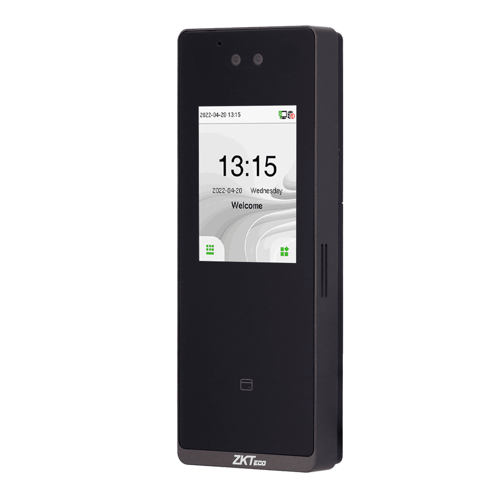 Controlo de acesso e presença IP65 – Facial, cartão MF e PIN – 3.000 caras | 150.000 registos – 2.8″ Ecrã tátil TFT IP, WiFi, USB, 485 e Wiegand – Soft. Assiduidade: ZKBioTime 8 – Soft. Acessos: ZKBioCV
