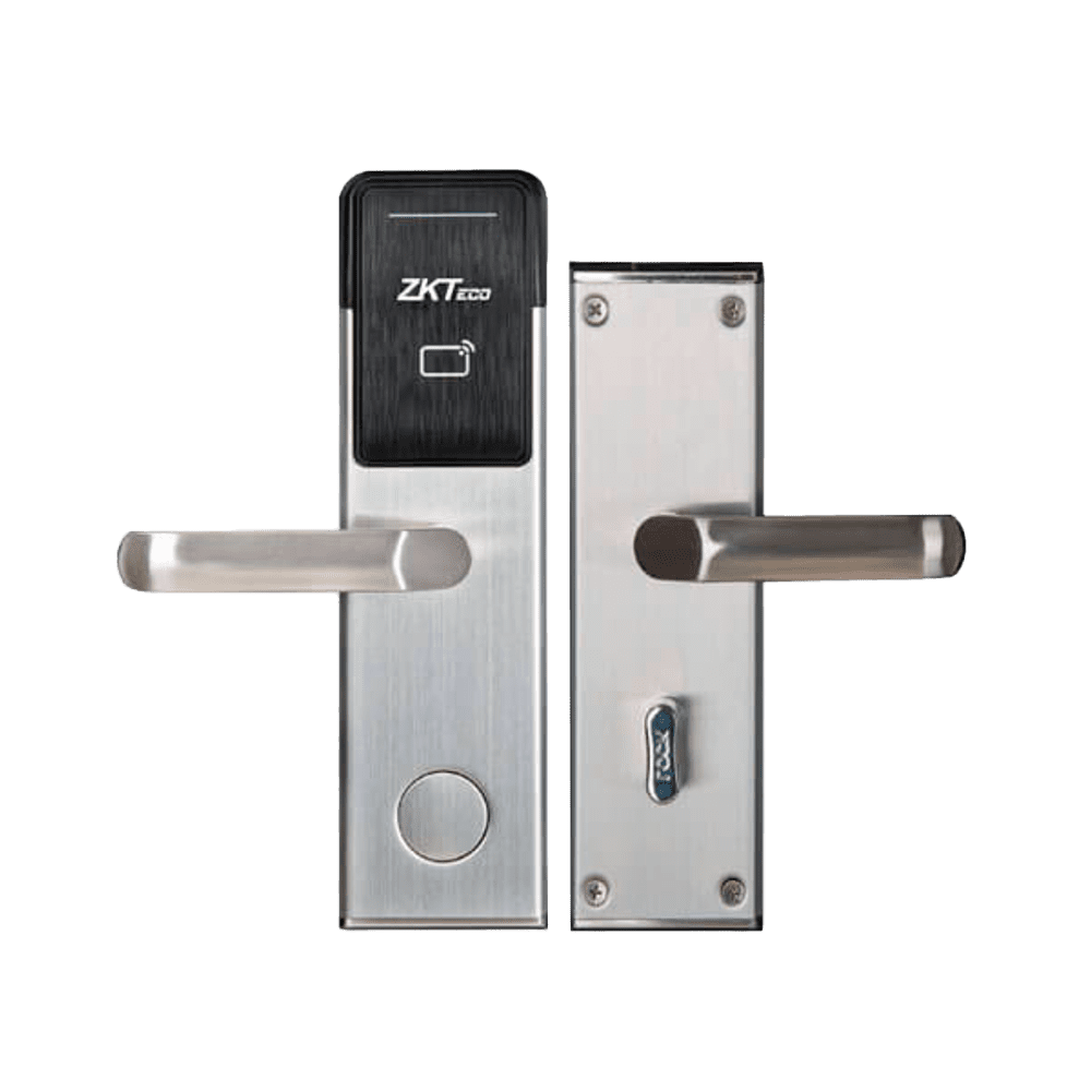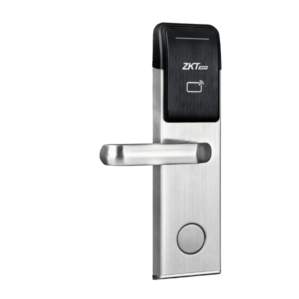 Fechadura de hotel online – Abertura por cartão MF – Backset 70 mm | Abertura esquerda – Autónoma 4 x pilhas AA – Bombín de emergência – Gestão com o software ZKBio CVSecurity
